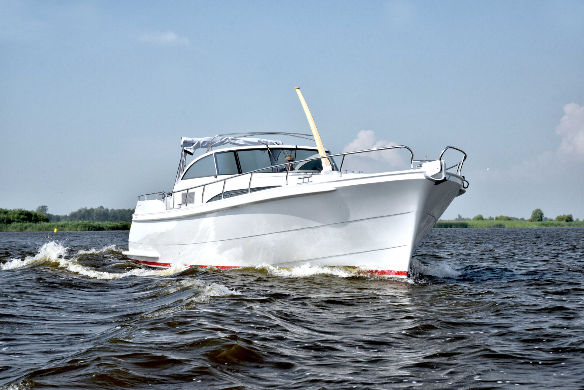 Nederland is een jachtbouwer rijker. Met de Alu 13.50 spreekt Gerrit Hofstra over ‘een doordacht aluminium motorjacht met een geheel eigen karakter’. Het resultaat is een eigentijds schip met een knikspantromp. Een opbouw met ronde vormen en veel glas zijn kenmerkend voor de Alu 13.50. Voorop het schip pronkt een houten mast, een knipoog naar Hofstra’s andere passie: hout. Op de Alu 13.50 heeft de buitenruimte prioriteit gekregen. Binnen een handomdraai is de kuiptent weg te klappen en ontstaat een grote open ruimte met achterin een vaste bank. De tent kan gedeeltelijk blijven staan waardoor deze dienst doet als bimini. Voor optimaal zicht rondom beschikken de schipper en meevaarder elk over een verhoogd geplaatste stoel. Voor de romp gebruikt Hofstra 5 mm dik aluminium, voor het dek en opbouw een dikte van 4 mm. In combinatie met een Volvo D6 met 370 pk moet de relatief lichte Alu 13.50 een topsnelheid kunnen halen van 20 knopen.